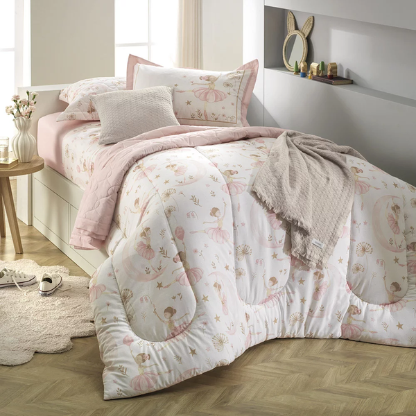 Desfrute da qualidade Karsten e transforme o quarto da sua filha em um verdadeiro refúgio de conforto e beleza com o Jogo de Colcha 3 Peças Infantil Karsten Alícia.