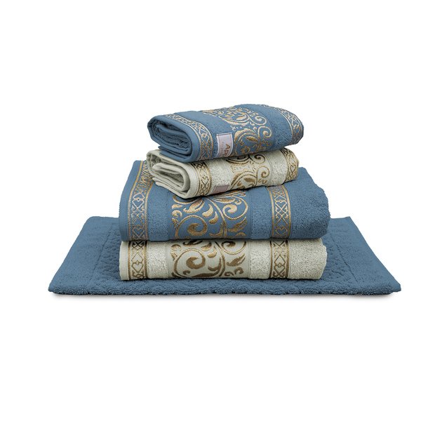 O Jogo de Toalhas 5 Peças La Vie é conhecido pelo toque macio, design elegante e detalhes em fio dourado, que confere um visual sofisticado a qualquer banheiro.