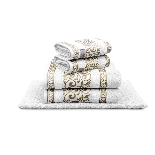O Jogo de Toalhas 5 Peças La Vie é conhecido pelo toque macio, design elegante e detalhes em fio dourado, que confere um visual sofisticado a qualquer banheiro.